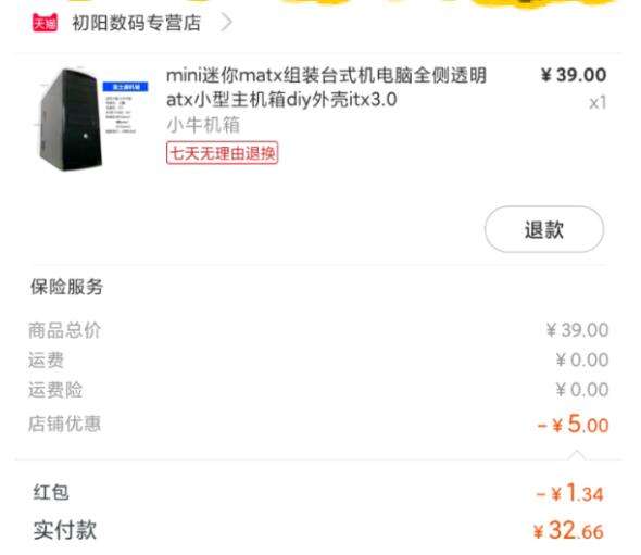 楼主30号大学就放假了,回家闲着没事干,手里还有一根内存条,想着不能浪费,得装台机子卖,换点零花钱。于是乎淘宝找了半天,发现了这款34块钱的机箱。