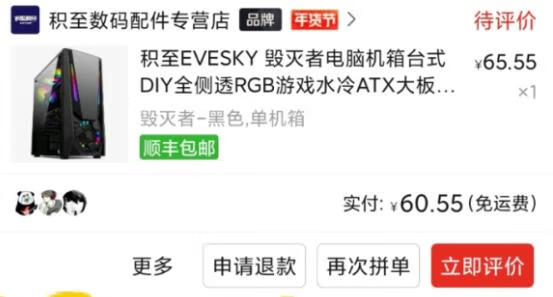 最后隆重介绍这台机子里唯一全新的配件,pdd用劵以后60包油的侧透机箱