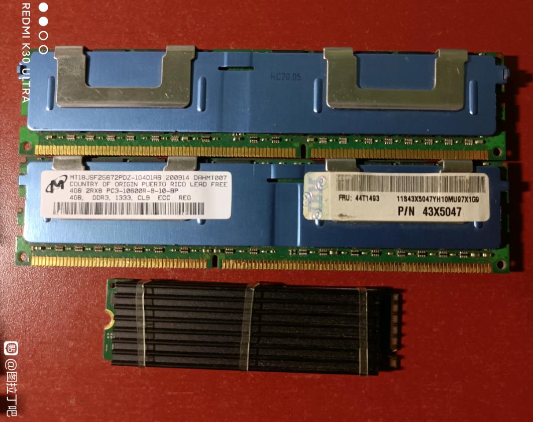 内存条两根镁光ecc4g,三星pm961的128g nvme,是961还是啥记不清了,反正群友70福利的